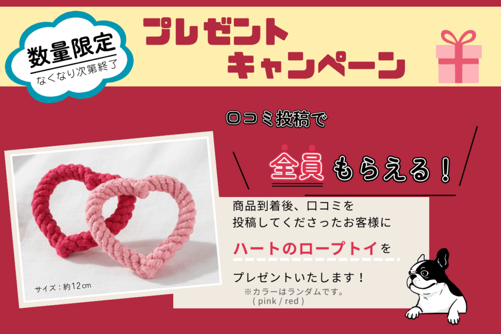 可愛らしいおもちゃ・ハートロープトイをプレゼントするキャンペーンを実施中です。