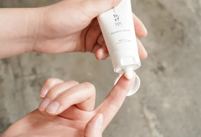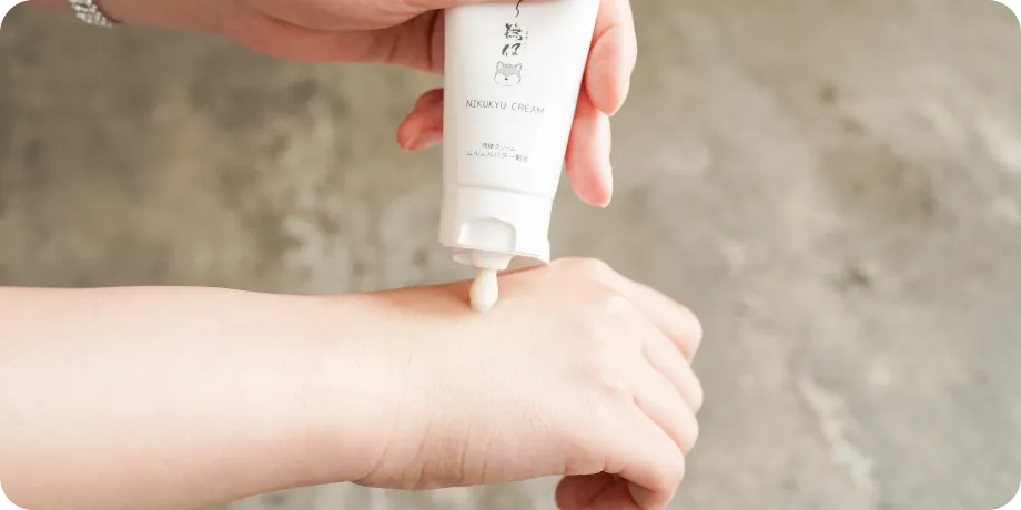 クリームを塗ったあと、軽くマッサージしてなじませた後に、余分な油分をティッシュなどで軽く拭き取ると、ベタつきを最小限に抑えられます。
