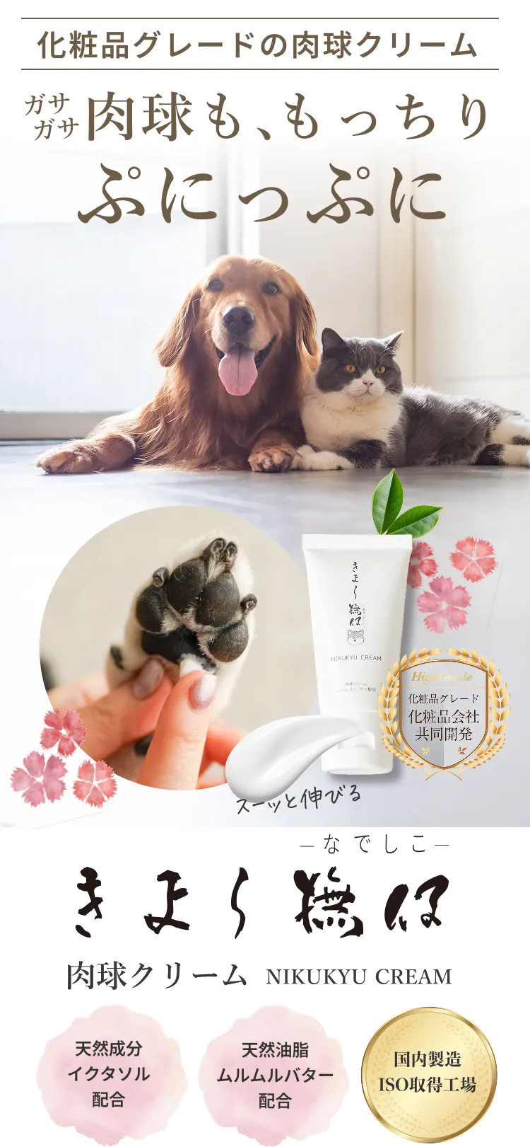 両社の知見を生かし、やさしさと効果の両方を欲張りに追い求めたペットとペットを愛する人のための肉球クリームです。